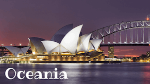 Australia is an island country in the Southern hemisphere and belongs to Oceania/Australia. Australia is surrounded by the Indian Ocean and the Pacific Ocean.